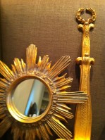 The Save: Gold painted resin sunburst mirror and laurel wreath plate holders from Hill Street Warehouse in Atlanta.
