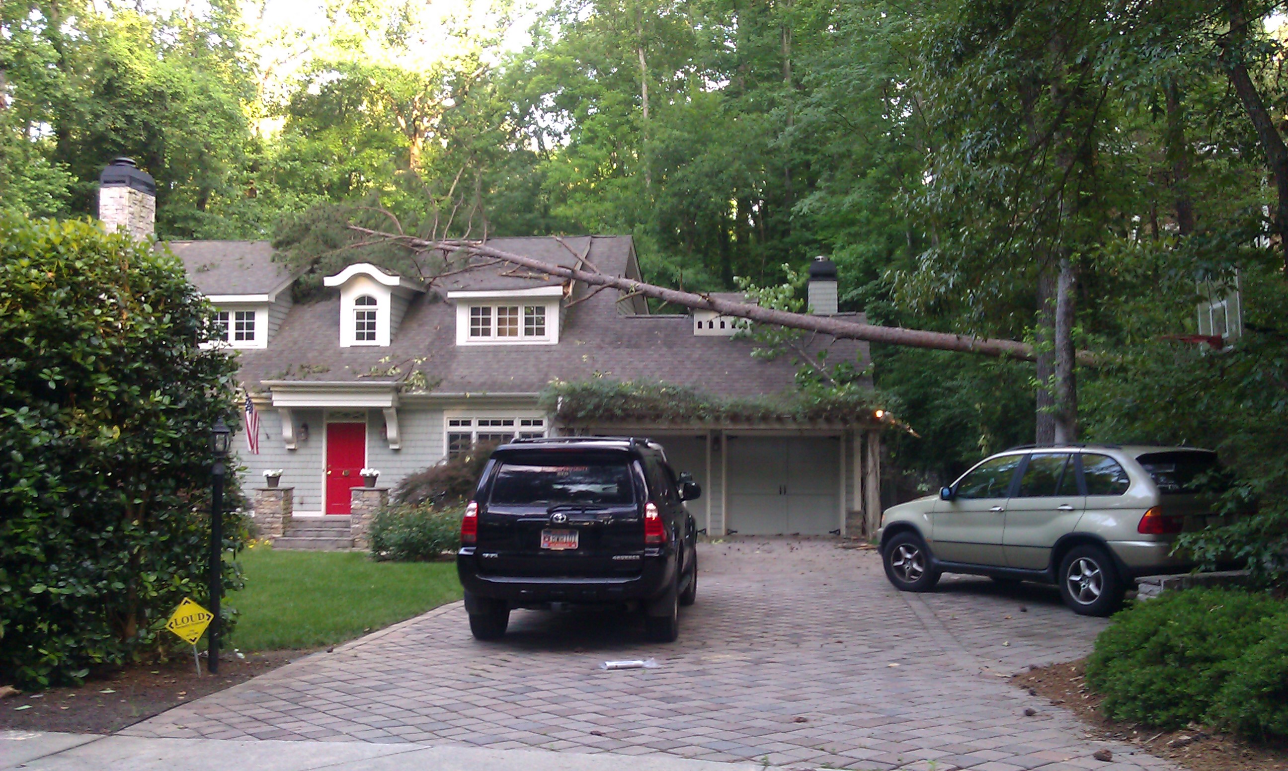 In the case of this house on Randall Farm, the insurance company will most likely cover the damage to the house, but not the tree removal. Again, we all hope the neighbor realizes what happened and comes to the rescue.
